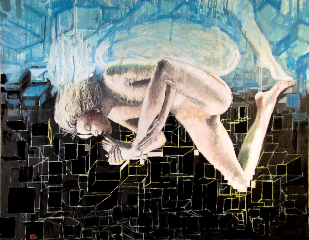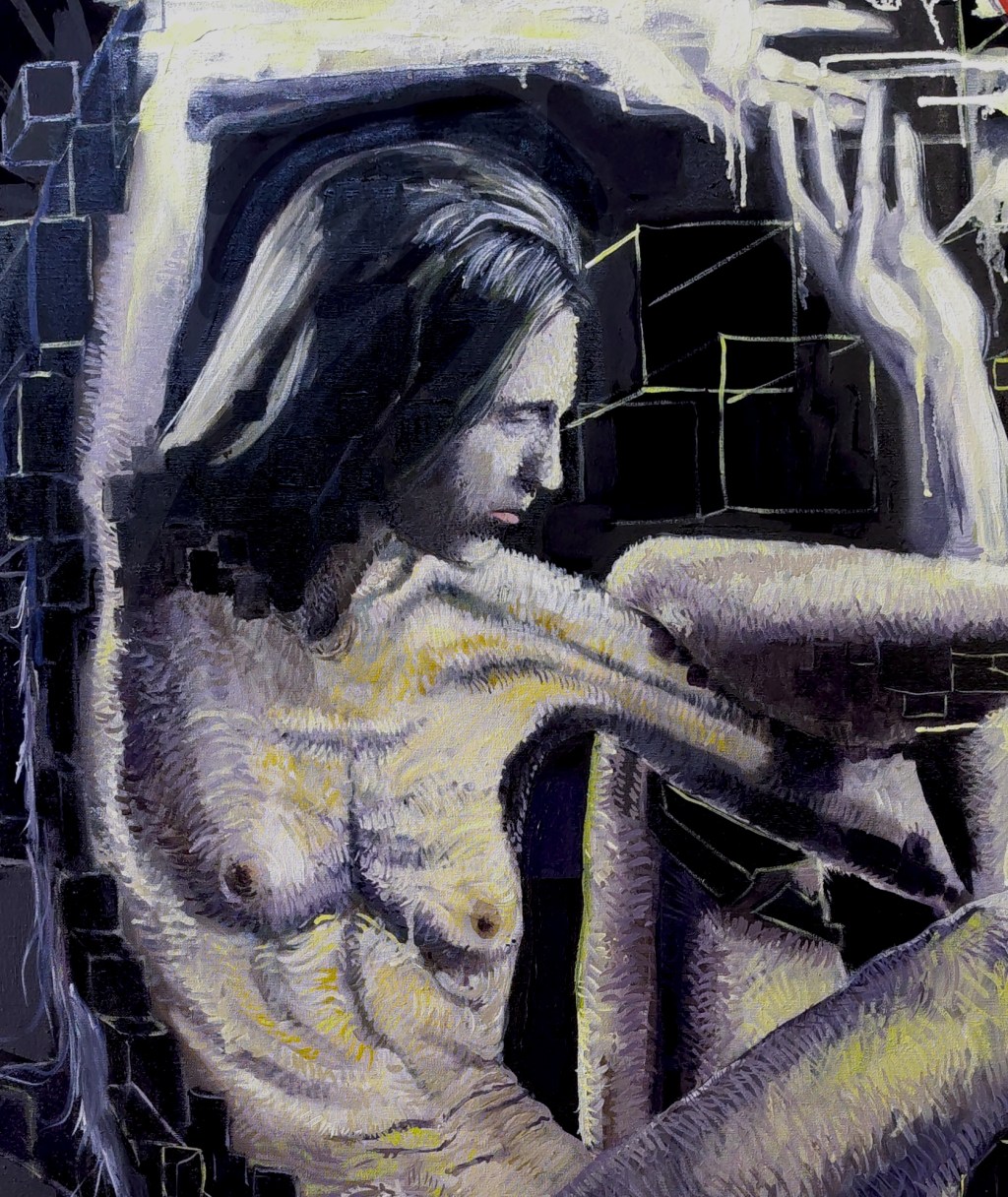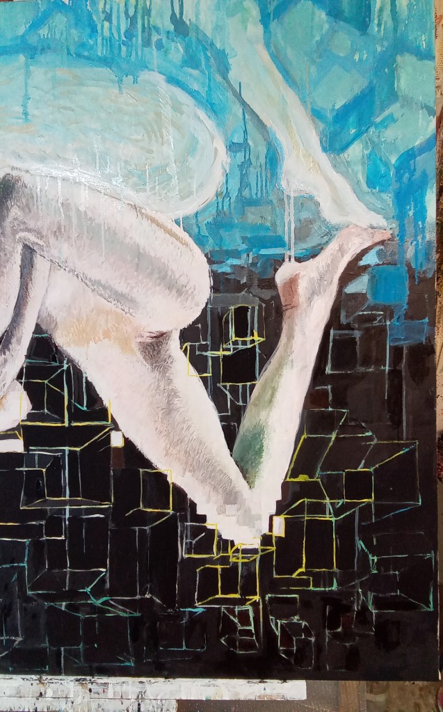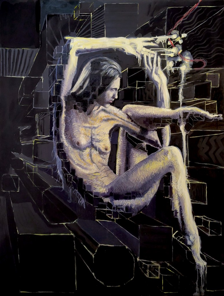 Je travaille ici la question du « nu » et plus précisément j’essaie de rendre compte de ce que fait au corps le filtre de l’image sur internet.