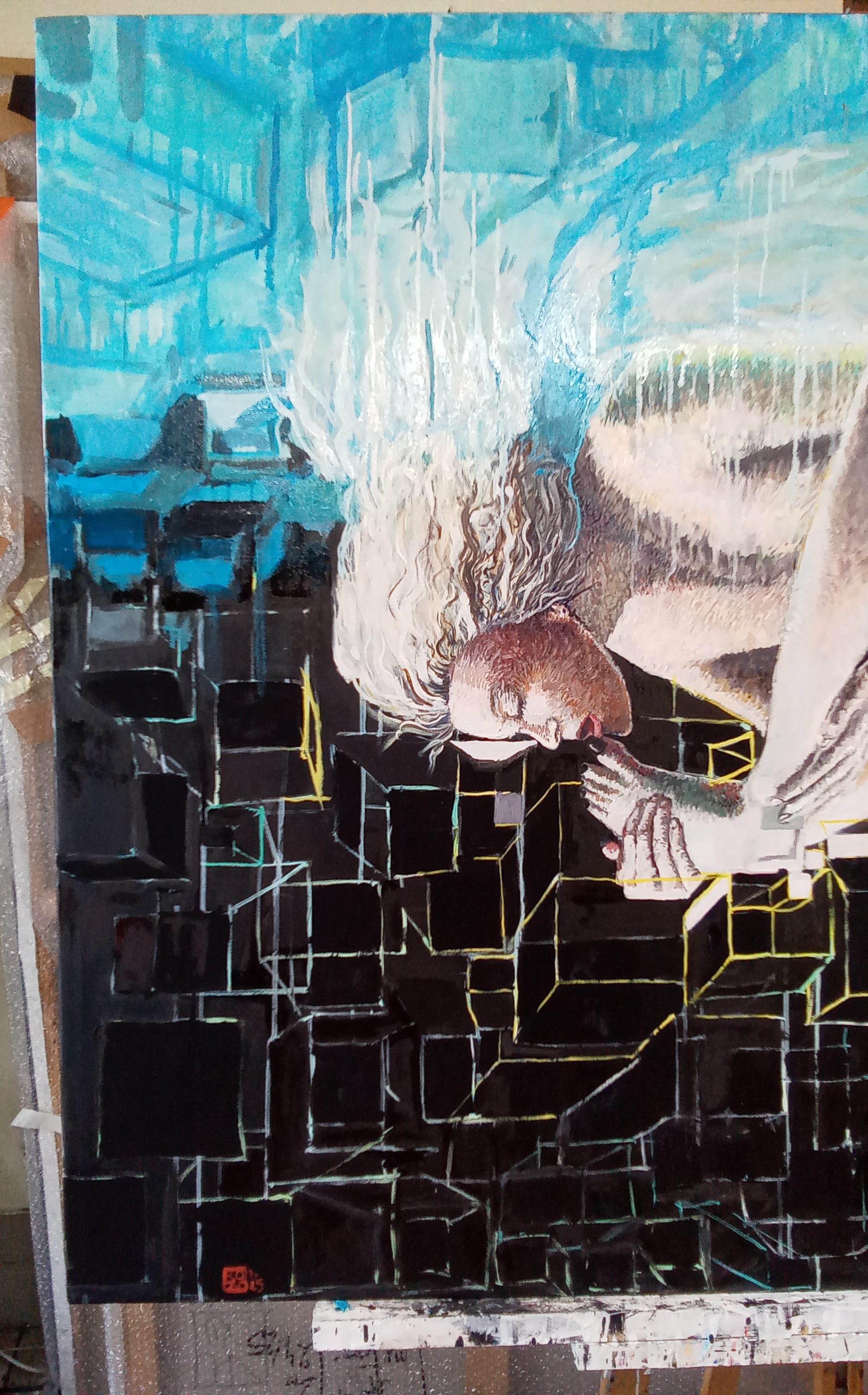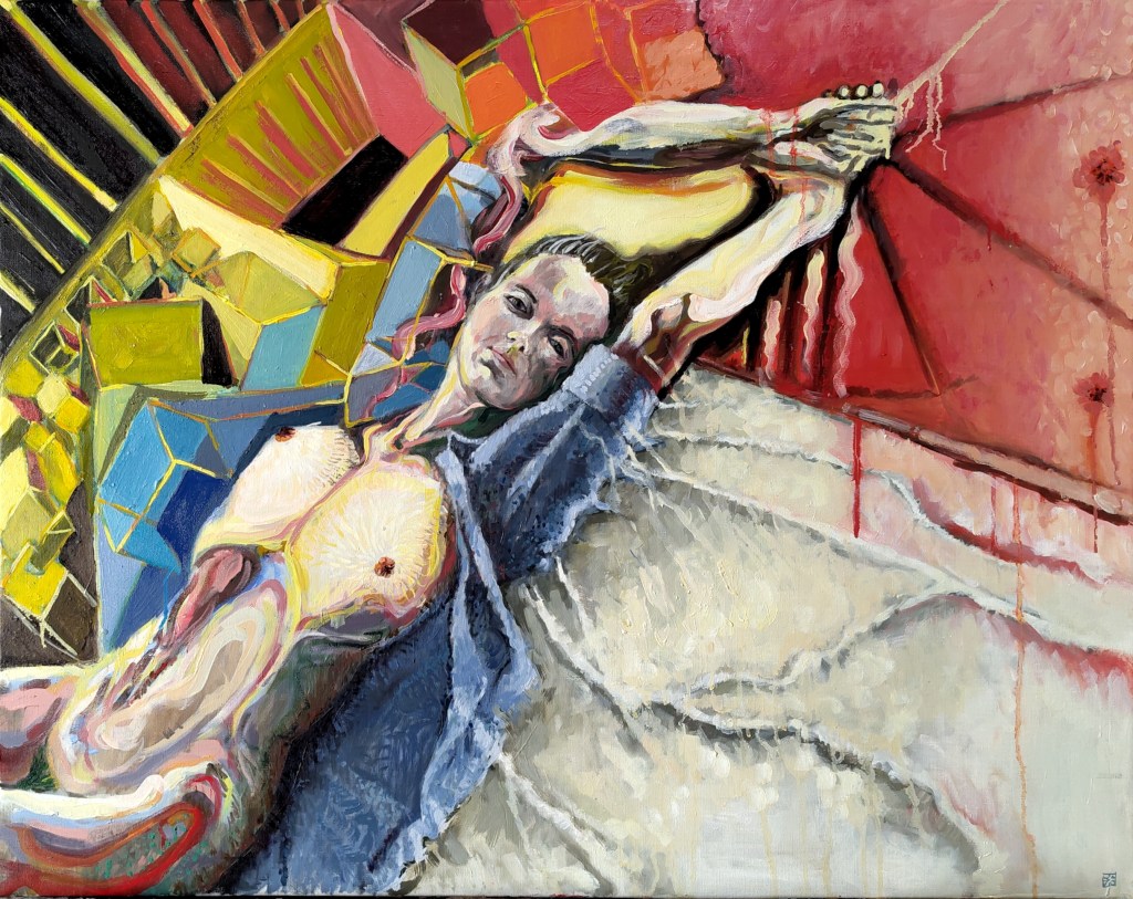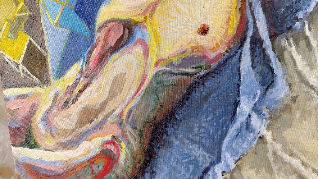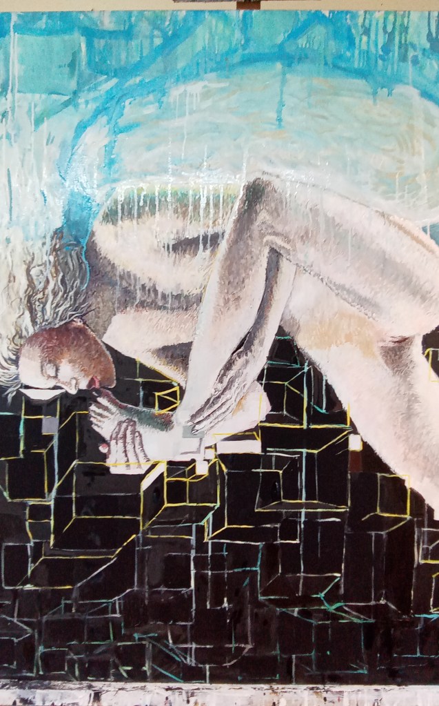 Je travaille ici la question du « nu » et plus précisément j’essaie de rendre compte de ce que fait au corps le filtre de l’image sur internet.